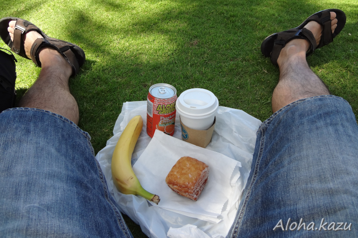 おいしい朝食をテイクアウトして、ダイヤモンドヘッドを眺めながらのんびり食べる。
