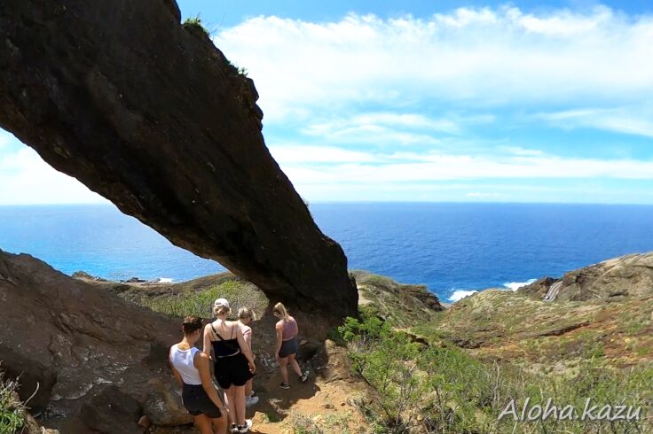 近くには有名な階段トレイル”ココヘッド・クレーター・トレイル“がありますが、アーチはその裏側に位置し、ハロナ潮吹き岩の少し手前の道路から見えますが、観光客は比較的少なめです。